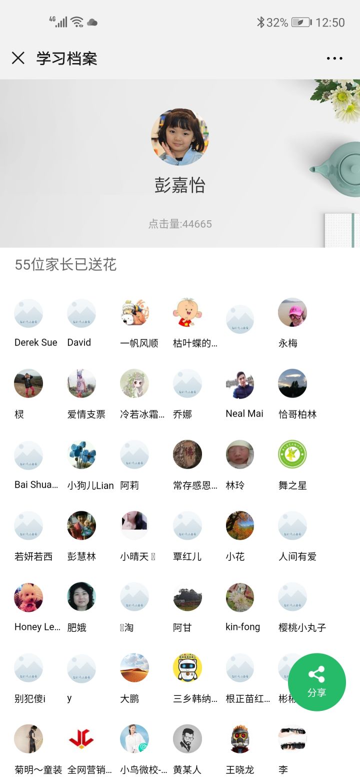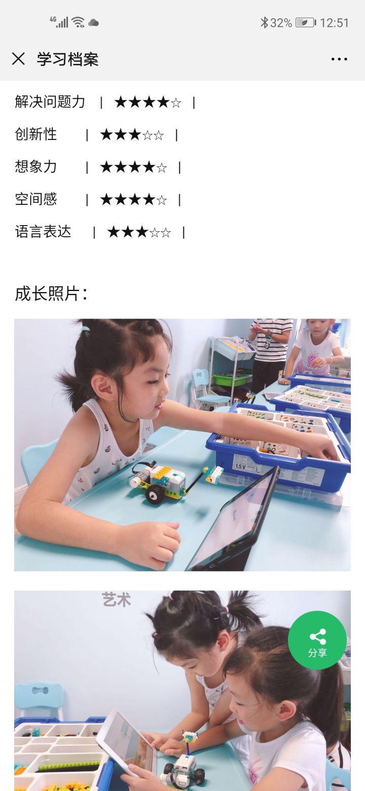 另外, 我們在轉介紹方面也有自己的系統, 我們定制了課程檔案系統, 讓每個(gè)孩子上課后都有個(gè)線(xiàn)上的檔案, 可以發(fā)給家長(cháng)看的, 微信轉發(fā)的, 家長(cháng)可以發(fā)朋友圈, 如果家長(cháng)的朋友看到了喜歡這個(gè)課程 的話(huà)就會(huì )促進(jìn)轉介紹發(fā)生, 還可以讓家長(cháng)給他送花, 送到多少花的時(shí)候還可以給家長(cháng)獎勵,所以就有了比較好的良性循環(huán)。